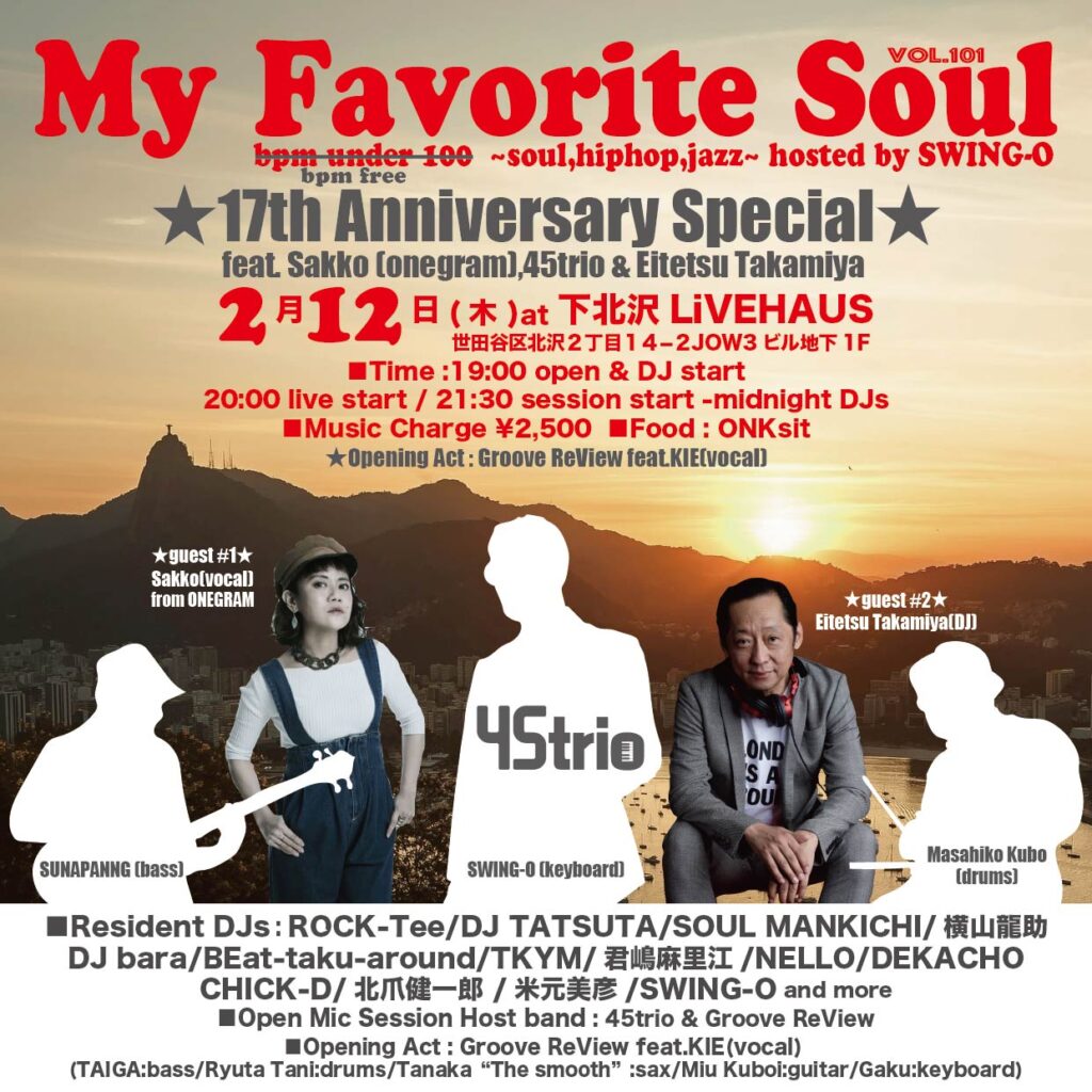 SWING-O主催の隔月ソウルイベントはついに17年周年、101回目を迎えます!!
